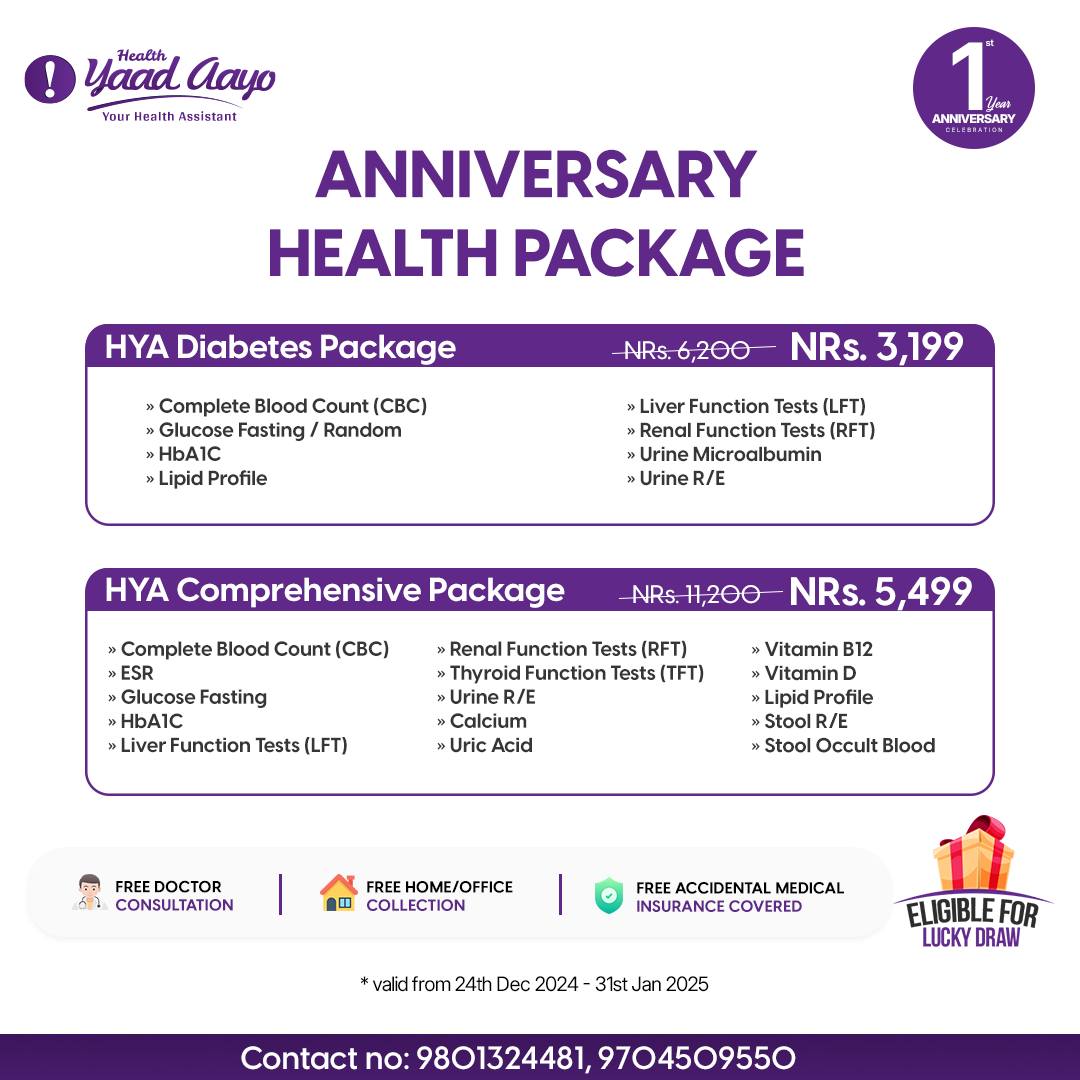 **Get all these health packages with the Health Yaad Aayo app! Book health packages easily and enjoy home service for a hassle-free experience.**